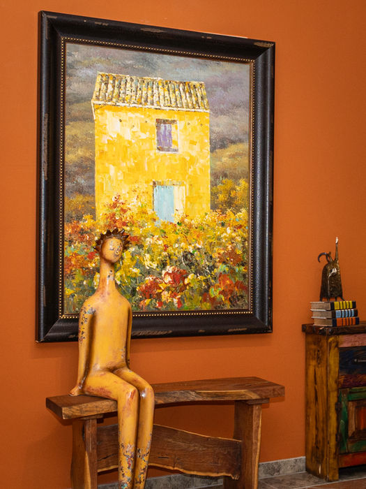 Sky blue walls and colorful hand painted hummingbirds set the background for this charming friendly abode. Solid hand-hewn mesquite furniture is infused with native Saguaro ribs typical of our southwestern aesthetic. Reclining couches, hand-made Mexican art and uniquely designed Indian rugs complete the space. All combine to assure your sense of comfort and belonging. A great place to start and finish your day.